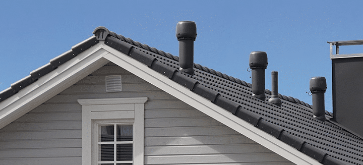 Помимо трубы вентиляции, на кровле можно поставить аэраторы. Эти устройства позволят воздуху свободно циркулировать между теплоизоляцией и внешним покрытием крыши. Кроме того, эти приборы пригодятся в случае, если длина ската более трех метров — тогда естественная тяга не сможет справиться.