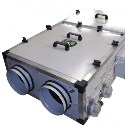 Вся система изготавливается в одном блоке, который занимает немного места и более экономичен в процессе эксплуатации. Благодаря рекуперативному блоку, экономия электроэнергии составляет до 75%, так как приточный воздух нагревается за счет удаляемого без смешивания с ним. Это способствует поддерживанию температурного режима в бассейне за счет собственного тепла. Мощность применяемых энергетических установок снижается в 2 раза в сравнении с применением раздельной вентиляции.